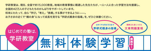 大切なこの時期に、学習への興味や関心をじょうずに引き出し、スタートからつまずかないために、今から楽しく学習を始めませんか?学研教室なら、「もじ」「かず」の基礎はもちろん、学校生活で必要な「しつけ」も身につけられます。学研教室でやさしい先生と入学前の準備をすれば、1年生になるのがますます楽しみになりますね!